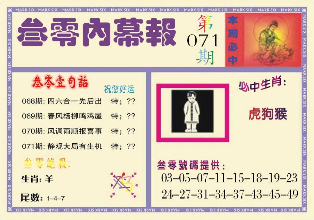 | 071期〖⑤肖〗鸡蛇马狗虎 |